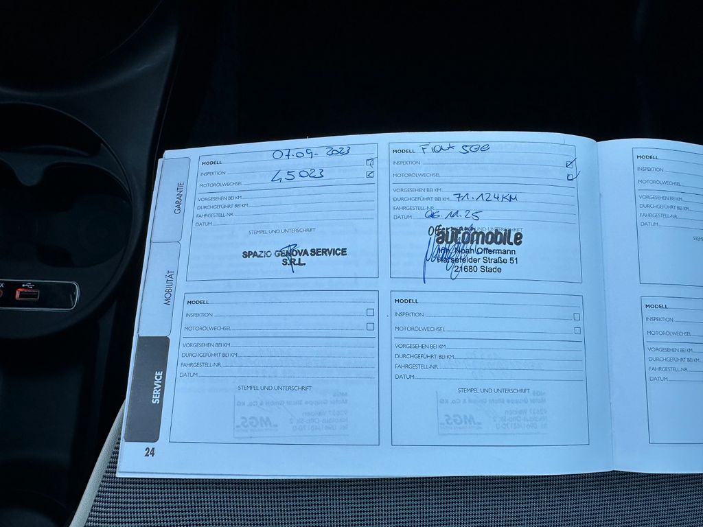 Herzlich Willkommen bei Offermann Automobile in Stade ✅Scheckheftgepflegt✅Gepflegter Kleinwagen mit nur _tkm Laufleistung. ✅TOP Ausstattung ✅1 Jahr Garantie∗ ✅HU Neu - F I N A N Z I E R U N G Gerne erstellen wir Ihnen ein individuelles Finanzierungsangebot, damit Ihr Traumwagen für Sie flexibel und bequem realisierbar wird. ⸻ G A R A N T I E Bei jedem Fahrzeug ist eine 12-monatige Gebrauchtwagengarantie inklusive, die viele wichtige Fahrzeugteile abdeckt und Ihnen ein hohes Maß an Sicherheit verspricht. ⸻ P R O B E F A H R T Damit Sie sich von Ihrem Wunschfahrzeug überzeugen können, bieten wir Ihnen eine unverbindliche Probefahrt an. ⸻ I N Z A H L U N G N A H M E Wir nehmen Fahrzeuge jeder Art in Zahlung – unabhängig von Marke, Modell oder Zustand. Gerne unterbreiten wir Ihnen ein faires und unverbindliches Angebot für Ihr jetziges Fahrzeug oder stellen Ihnen alternativ unser Vermittlungsangebot vor.Gerne nehmen wir ihren Gebrauchtwagen in Zahlung.Unsere - ✅ KFZ ZulassungsdienstAngebote und Dienstleistungen im Überblick ✅ An- und Verkauf von Gebrauchtfahrzeugen - ✅ Reifen- und Radwechsel - ✅ Ölwechsel Service /Fahrzeugcheck - ✅ Smart Repair /Reparatur kleiner Unfall oder Parkschäden - ✅ Inzahlungnahme ihres Fahrzeuges - ✅ Gebrauchtwagengarantie - ✅ Finanzierung - ✅ Kfz Ersatzteile Öffnungszeiten: Montag 16:30–18:30 Dienstag 16:30–18:30 Mittwoch 16:30–18:30 Donnerstag 16:30–18:30 Freitag 16:30–18:30 Samstag 09:00–15:00 Sonntag Geschlossen Weitere Informationen: - Zwischenverkauf und Irrtümer für dieses Angebot sind ausdrücklich vorbehalten. Ausschlaggebend sind einzig und allein die Vereinbarungen in der Auftragsbestätigung oder im Kaufvertrag. Den genauen Ausstattungsumfang, die genauen Kilometer und den Verkaufspreis erhalten Sie von unserem Verkaufspersonal. Bitte kontaktieren Sie uns. ∗Für Infos zum Garantie-/ oder Gewährleistungsumfang und Details zum KFZ stehen wir ihnen gerne telefonisch oder unter info@offermann-automobile.de zur Verfügung. ∗Umsatzsteuerausweis gem. §25a UstG nicht möglich. Sonderausstattung: - Komfort-Paket, Lounge-Paket, Uni-Lackierung (Sonderfarbe) Weitere Ausstattung: - Airbag Fahrer-/Beifahrerseite, Autom. Begleitfunktion der Beleuchtung (Follow me home), Automatische Türverriegelung, Außenspiegel elektr. verstell- und heizbar, beide, Beifahrerairbag abschaltbar, Bordcomputer, Chrom-Paket, Elektr. Bremskraftverteilung, Fahrassistenz-System: Bremsassistent, Geschwindigkeits-Begrenzeranlage, Heckscheibe heizbar, Infotainment-System: UConnect (Touchscreen 5"), Innenausstattung: Dekoreinlagen Armaturenbrett, lackiert, Isofix-Aufnahmen für Kindersitz an Rücksitz, Karosserie: 3-türig, Knieairbag Fahrerseite, Kopf-Airbag-System vorn und hinten, Kopfstützen hinten, Kühlergrill verchromt, Lenksäule (Lenkrad) höhenverstellbar, LM-Felgen, Modellpflege, Motor 1,2 Ltr. - 51 kW KAT, Panoramadach (Glas), Positions-Memory für Beifahrersitz, Reifen-Reparaturkit, Reifendruck-Kontrollsystem, Rücksitz geteilt / klappbar, Schadstoffarm nach Abgasnorm Euro 6, Seitenairbag vorn, Start/Stop-Anlage, Steckdose (12V-Anschluß) im Armaturenbrett, Steckdose (12V-Anschluß) vorn, Stoßfänger Wagenfarbe, Tankdeckel abschließbar, Türgriffe außen verchromt, WärmeschutzverglasungOffermann Automobile - Harsefelder Str. 51 - 21680, Stade - Inh. Noah Offermann (01629657195)